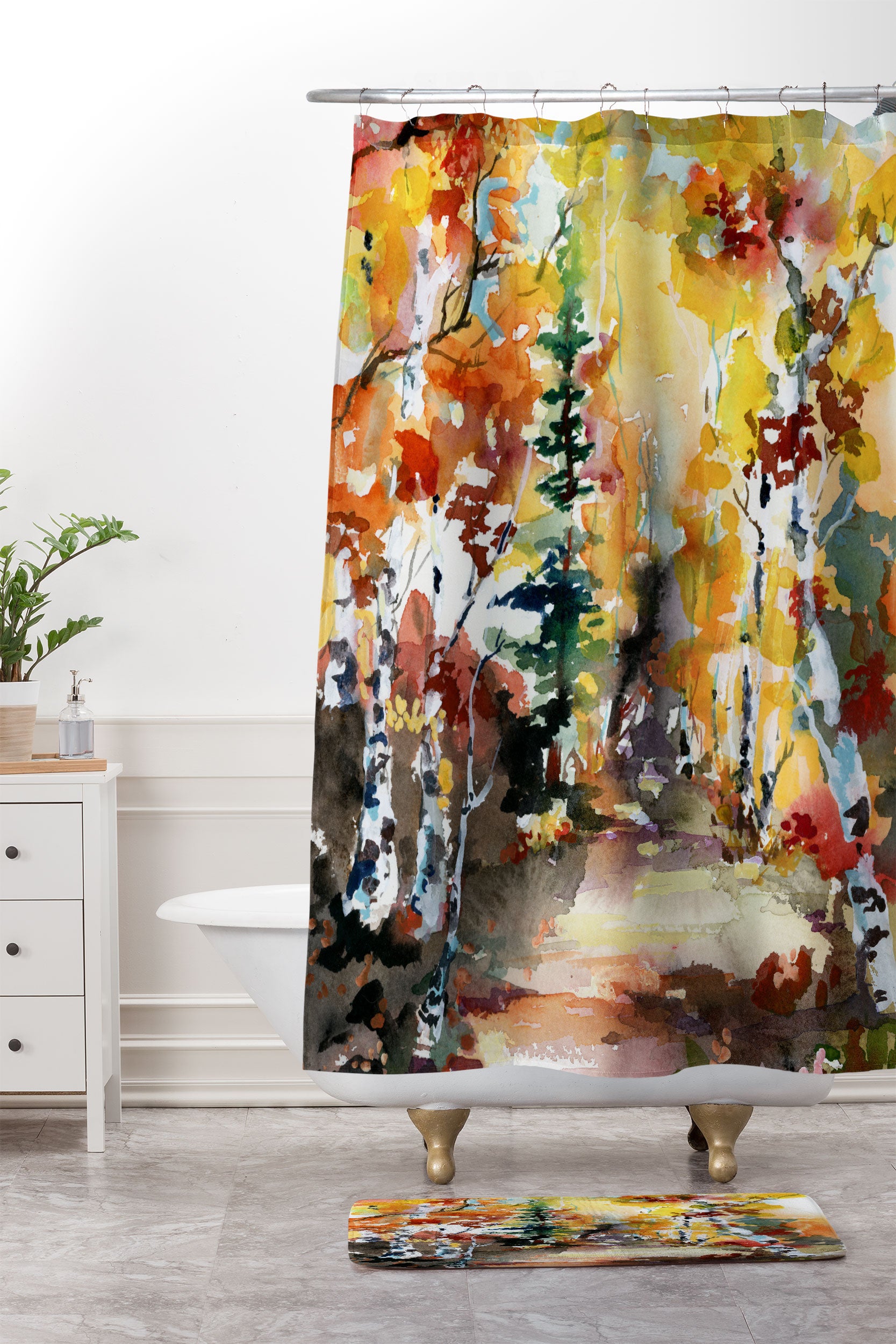 Ginette Fine Art Aspen Autumn Colors Shower Curtain And Mat