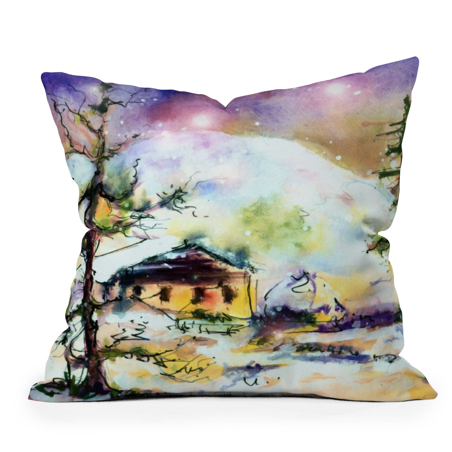 Ginette Fine Art Cabin In The Snow Throw Pillow