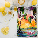 A must-have kitchen accessory any way you slice it. The Deny Designs cutting board is made from bamboo wood that won't look too heavy when integrated into your kitchen decor. Available in array of curated designs, the display side is printed with a satin finish that will pop when displayed on your counter or hung on the wall through the 1" handle. The prep side is a bamboo woodgrain that can be easily washed with a non-abrasive cloth. And the best part? Every purchase pays the artist who designed it—supporting creativity worldwide.