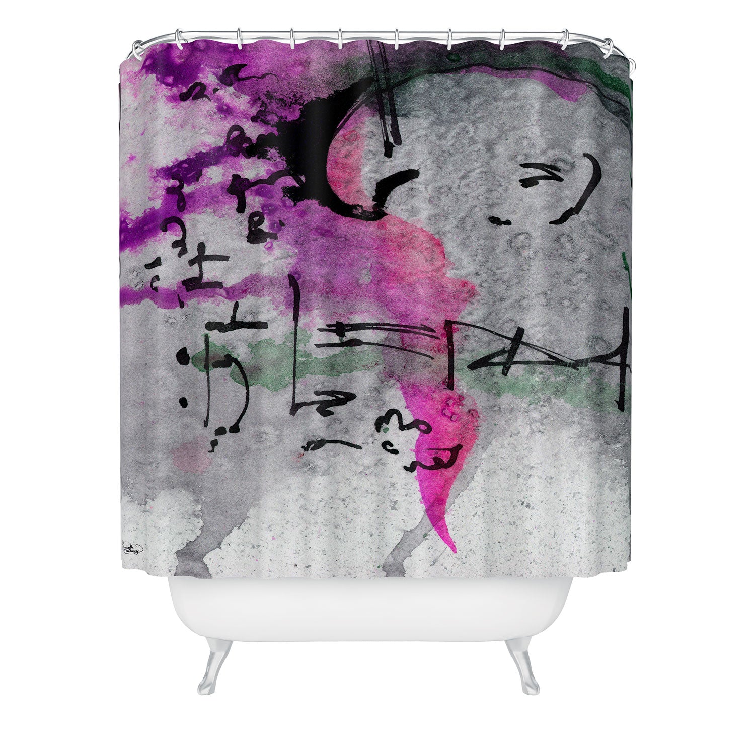 Set the stage. The Deny Designs shower curtain is crafted from 100% woven polyester and makes the perfect backdrop for whatever your bathroom decor may be. Adding some design to your shower curtains is a great way to make a statement in a room known for presenting plenty of design challenges. The buttonhole openings along the top means that you're free to use any curtain rings or hooks you please. And the best part? Every purchase pays the artist who designed it—supporting creativity worldwide.