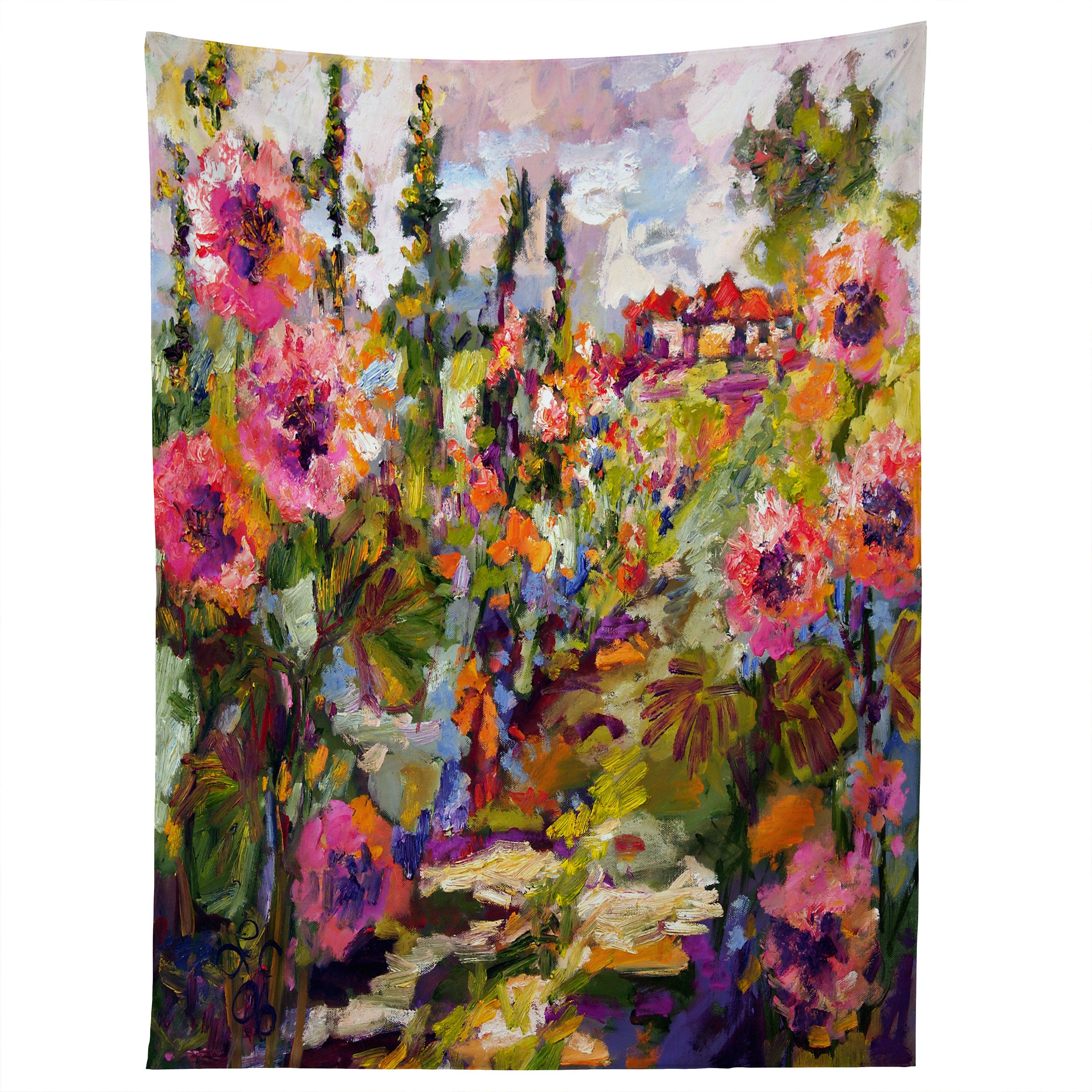Ginette Fine Art Garden Path Hollyhock Tapestry
