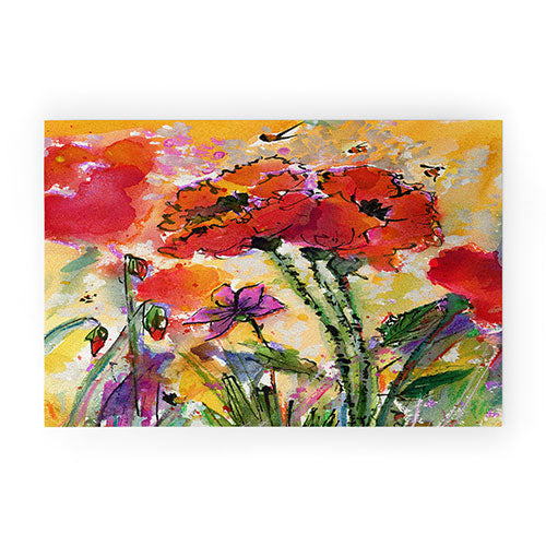 Ginette Fine Art Red Poppies and Bees Welcome Mat