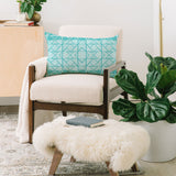 Gneural Shifting Pyramids Cyan Oblong Throw Pillow