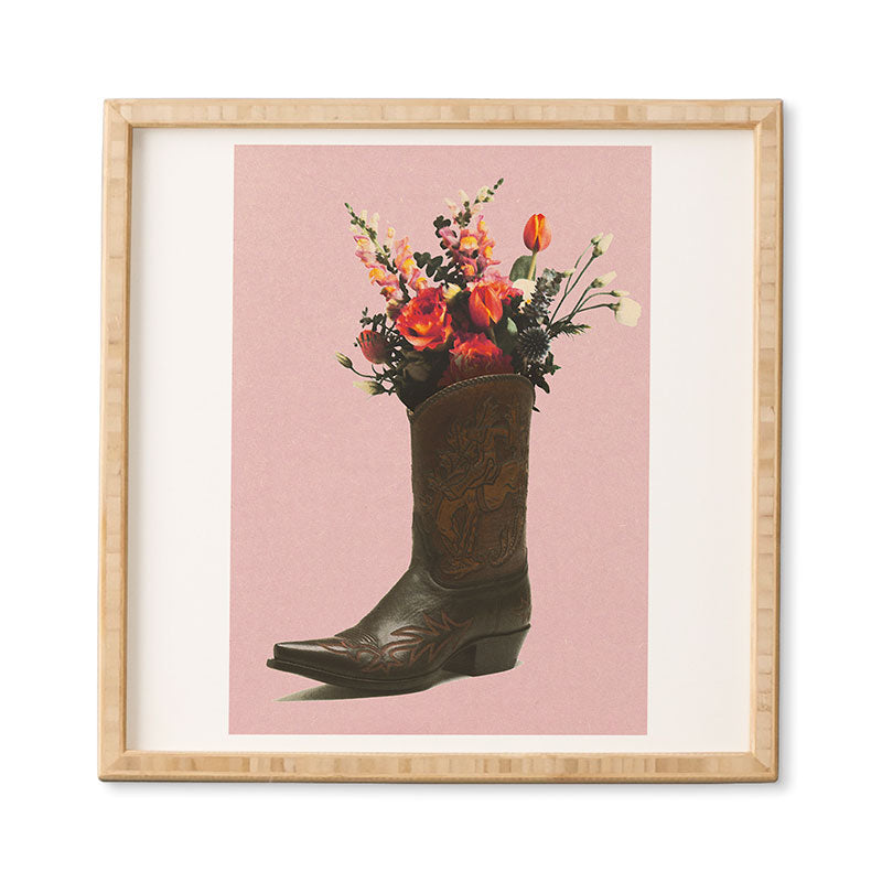 gnomeapple A Cowboy Boot With Spring Bouqet Framed Wall Art