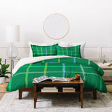 H Miller Ink Illustration Abstract Tennis Net Pattern Green Duvet Cover