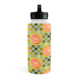 H Miller Ink Illustration Checkered Citrus Fruit in Sage Water Bottle