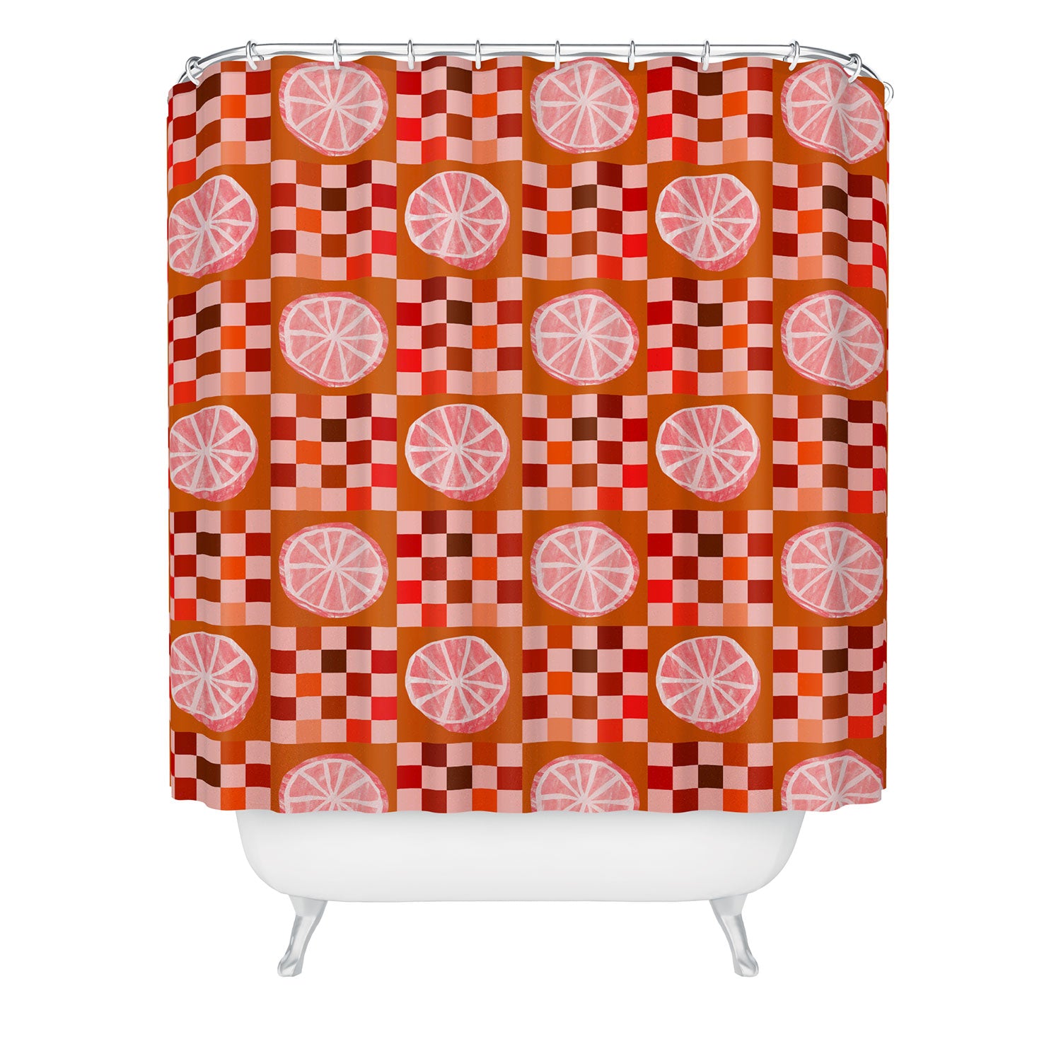H Miller Ink Illustration Checkered Sliced Citrus Fruit Shower Curtain