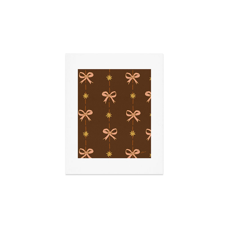 H Miller Ink Illustration Cute Hair Bows Stars in Brown Art Print