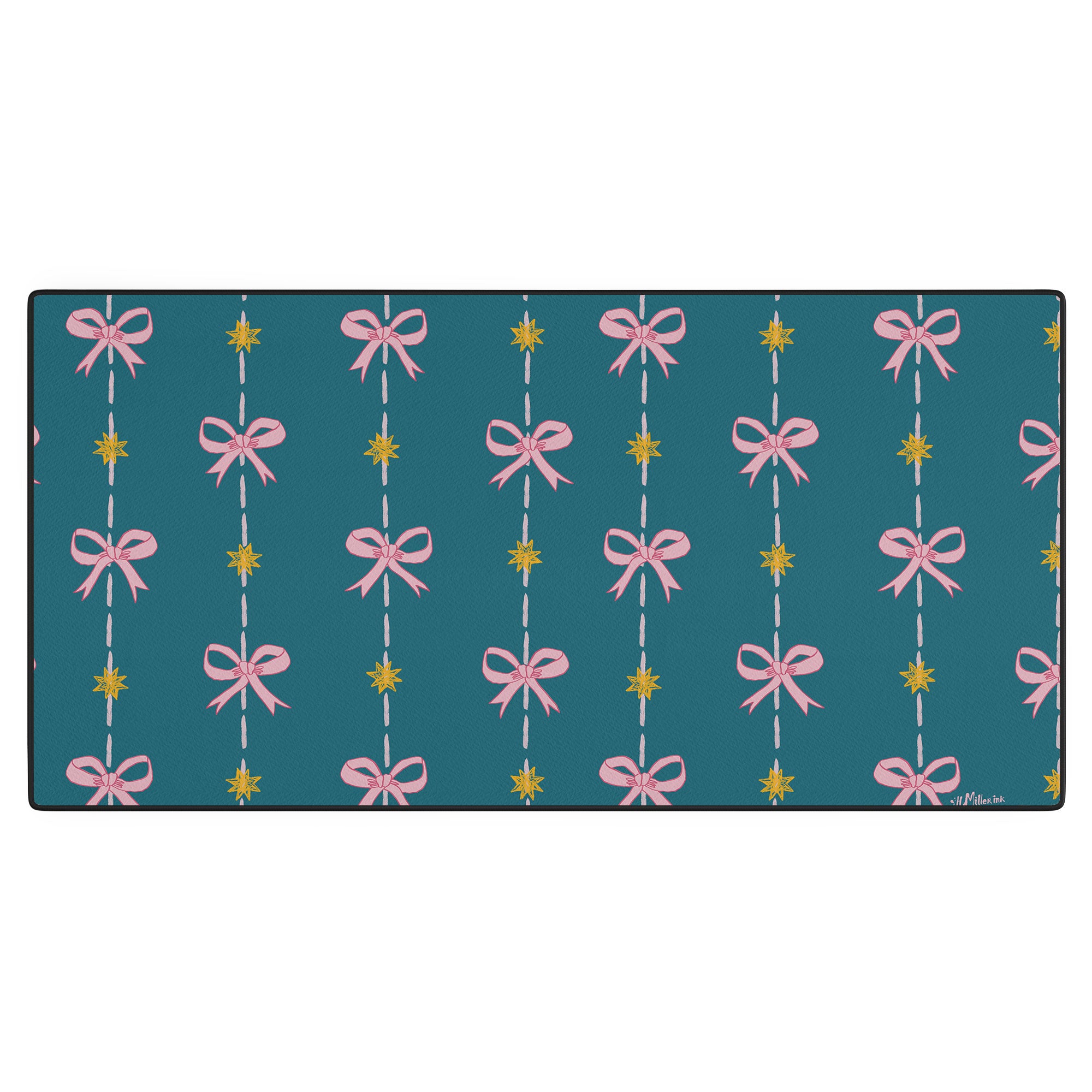 H Miller Ink Illustration Cute Hair Bows Stars in Teal Desk Mat