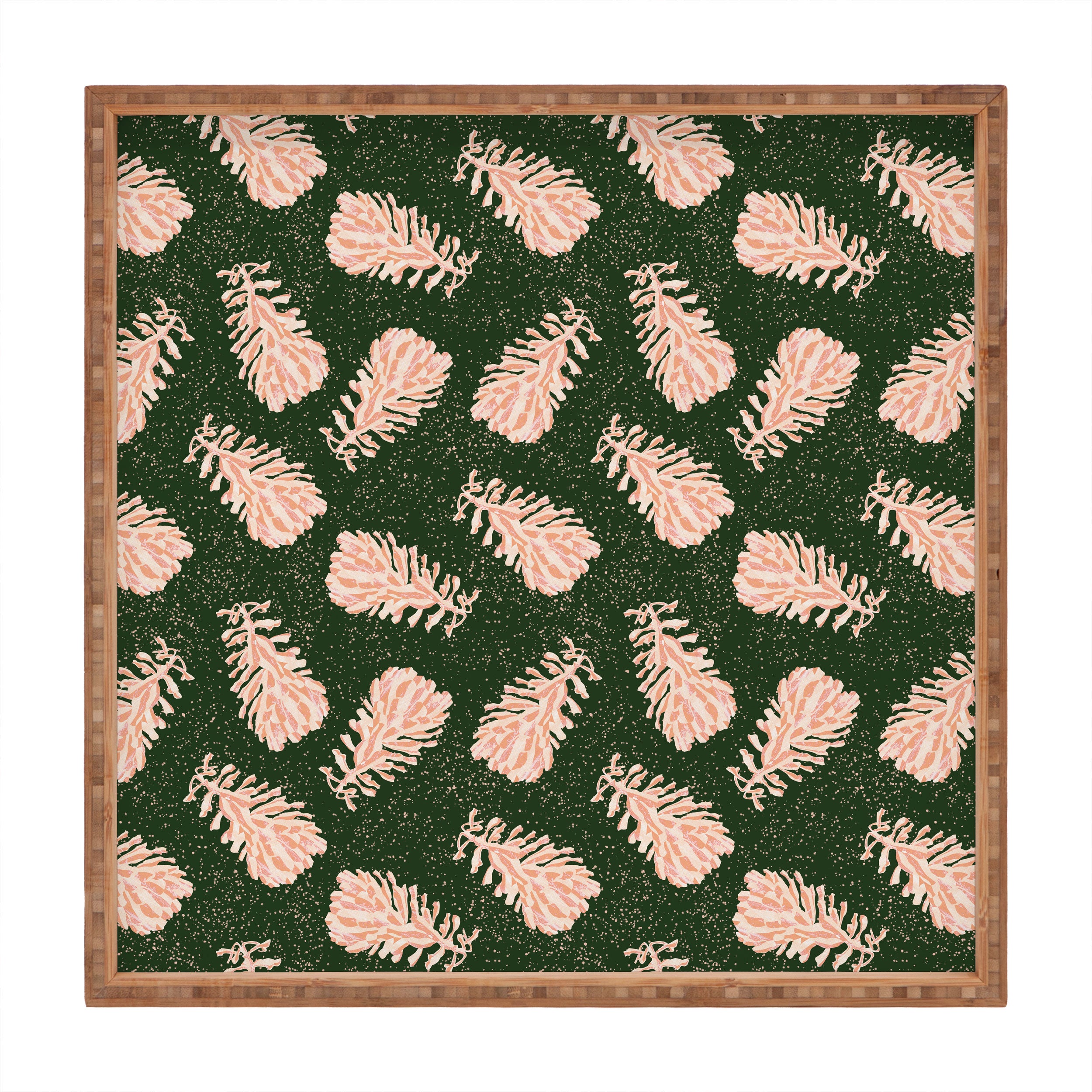 H Miller Ink Illustration Dancing Pinecones Forest Green Square Tray
