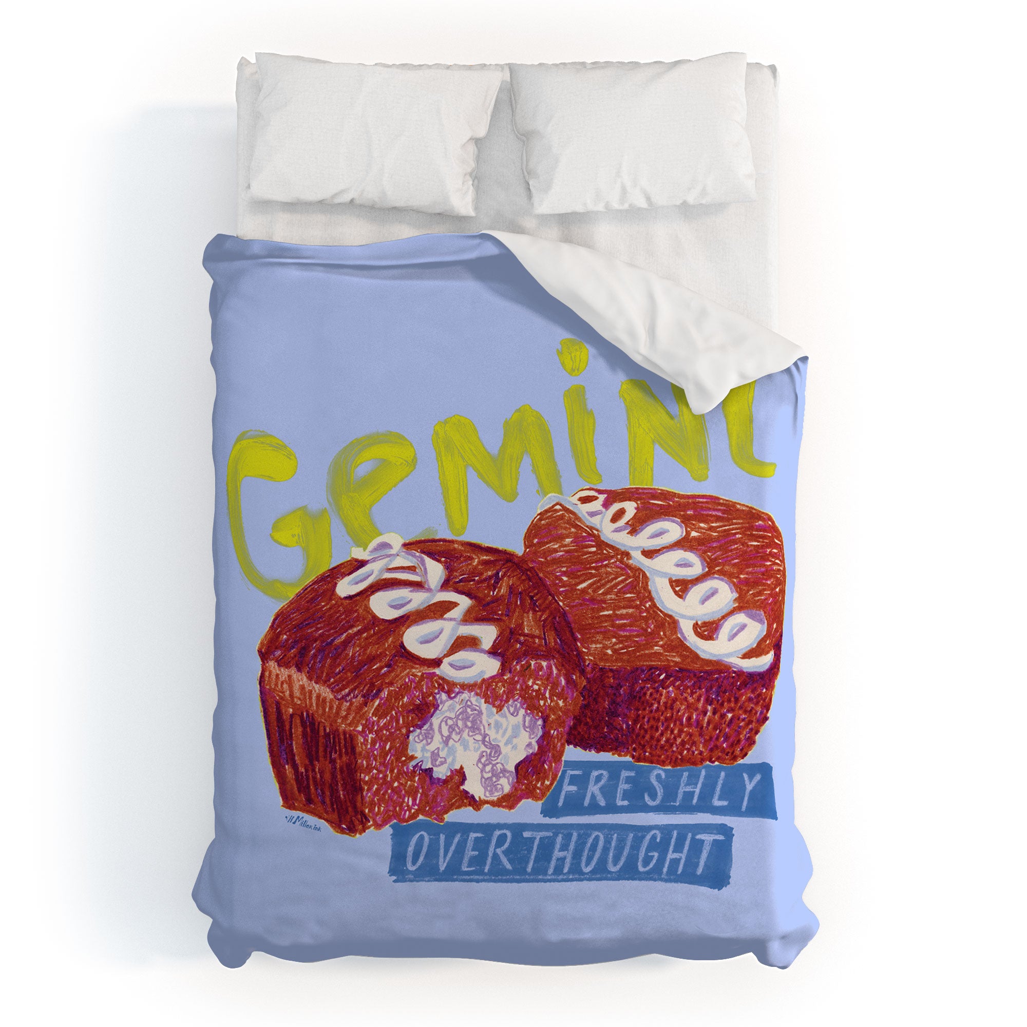H Miller Ink Illustration Gemini Twins in Lavender Blue Duvet Cover