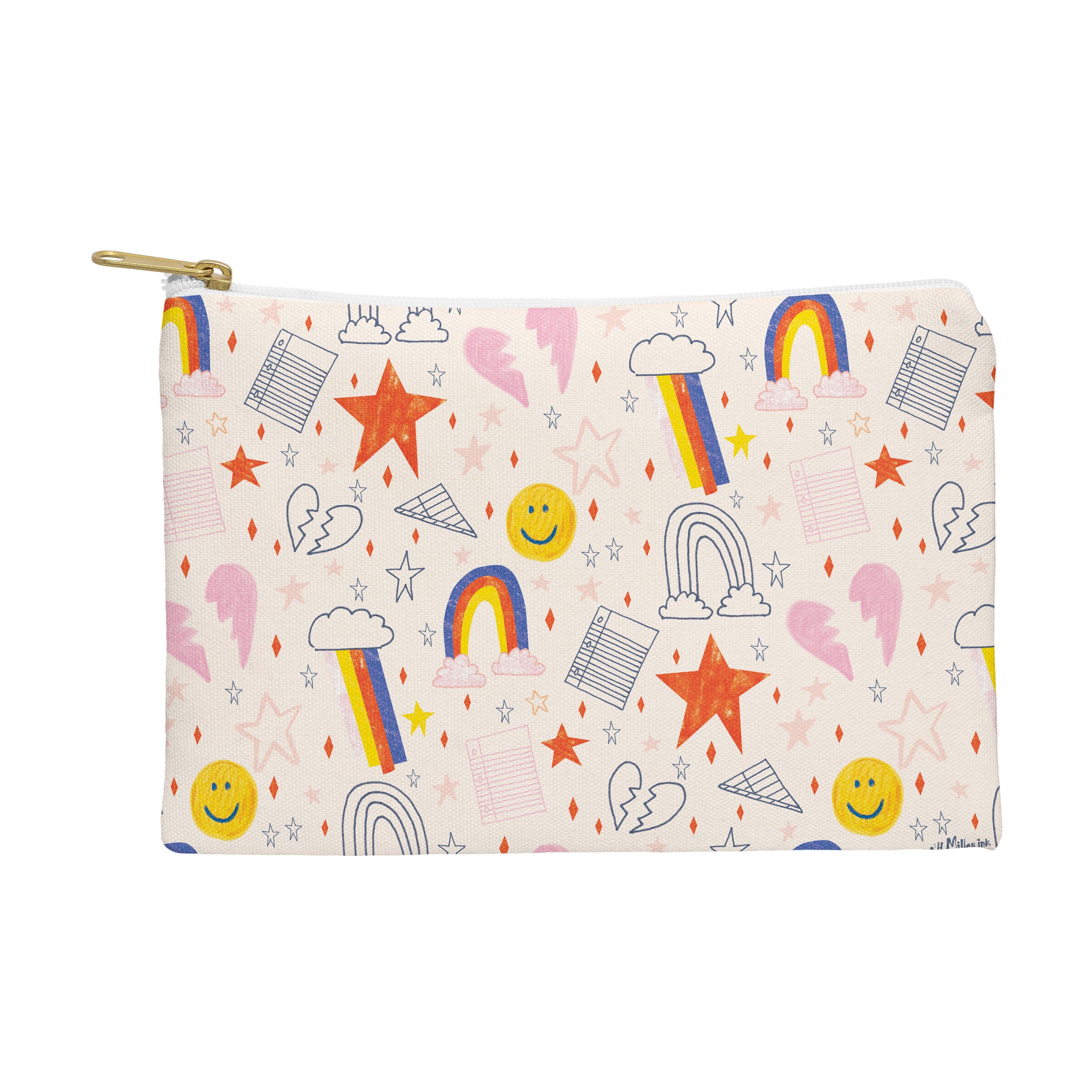H Miller Ink Illustration Happy Smiley Face Retro Rainbows Pouch