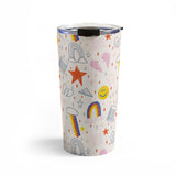 H Miller Ink Illustration Happy Smiley Face Retro Rainbows Travel Mug
