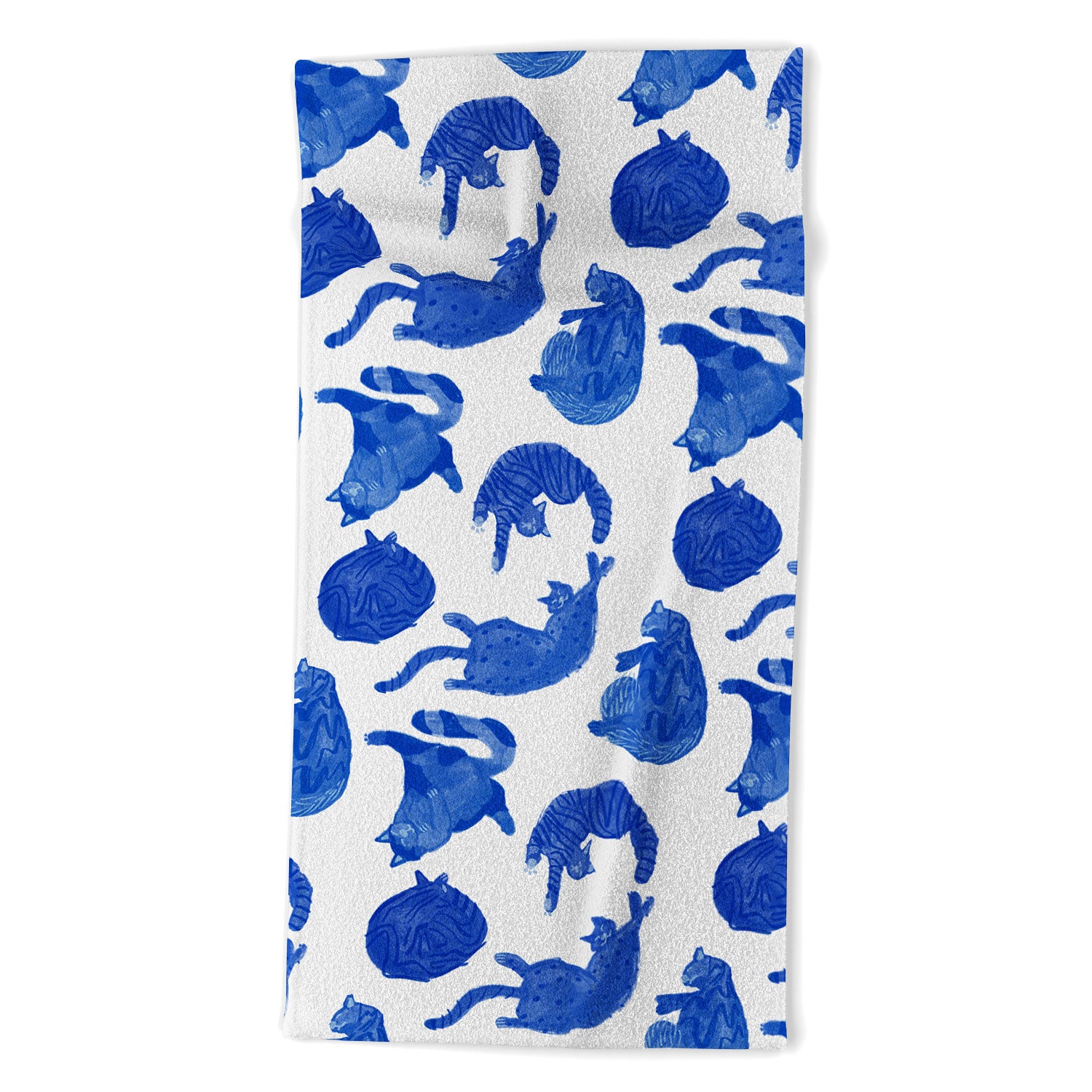 H Miller Ink Illustration Sleepy Cozy Kitty Cats in Blue Beach Towel