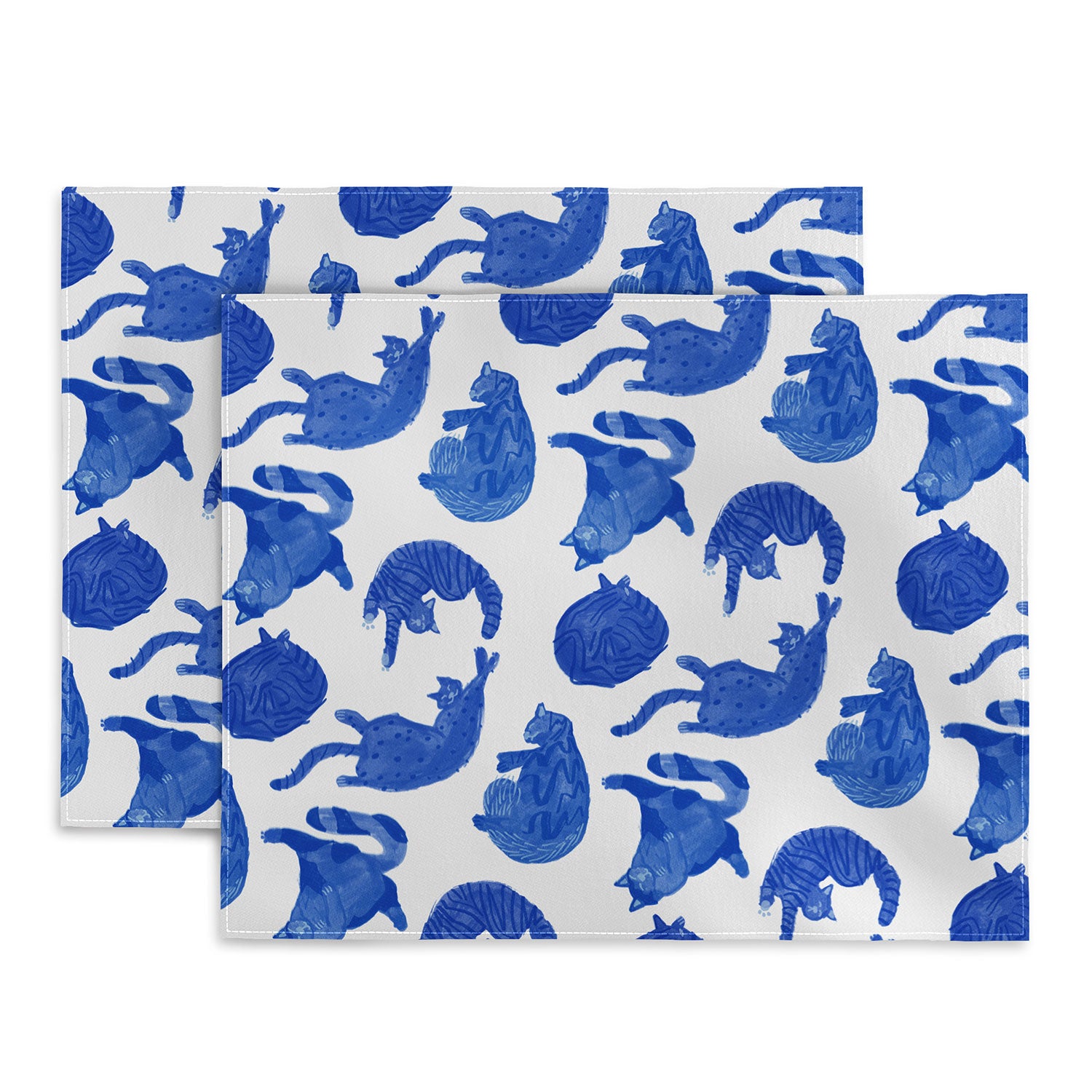 H Miller Ink Illustration Sleepy Cozy Kitty Cats in Blue Placemat