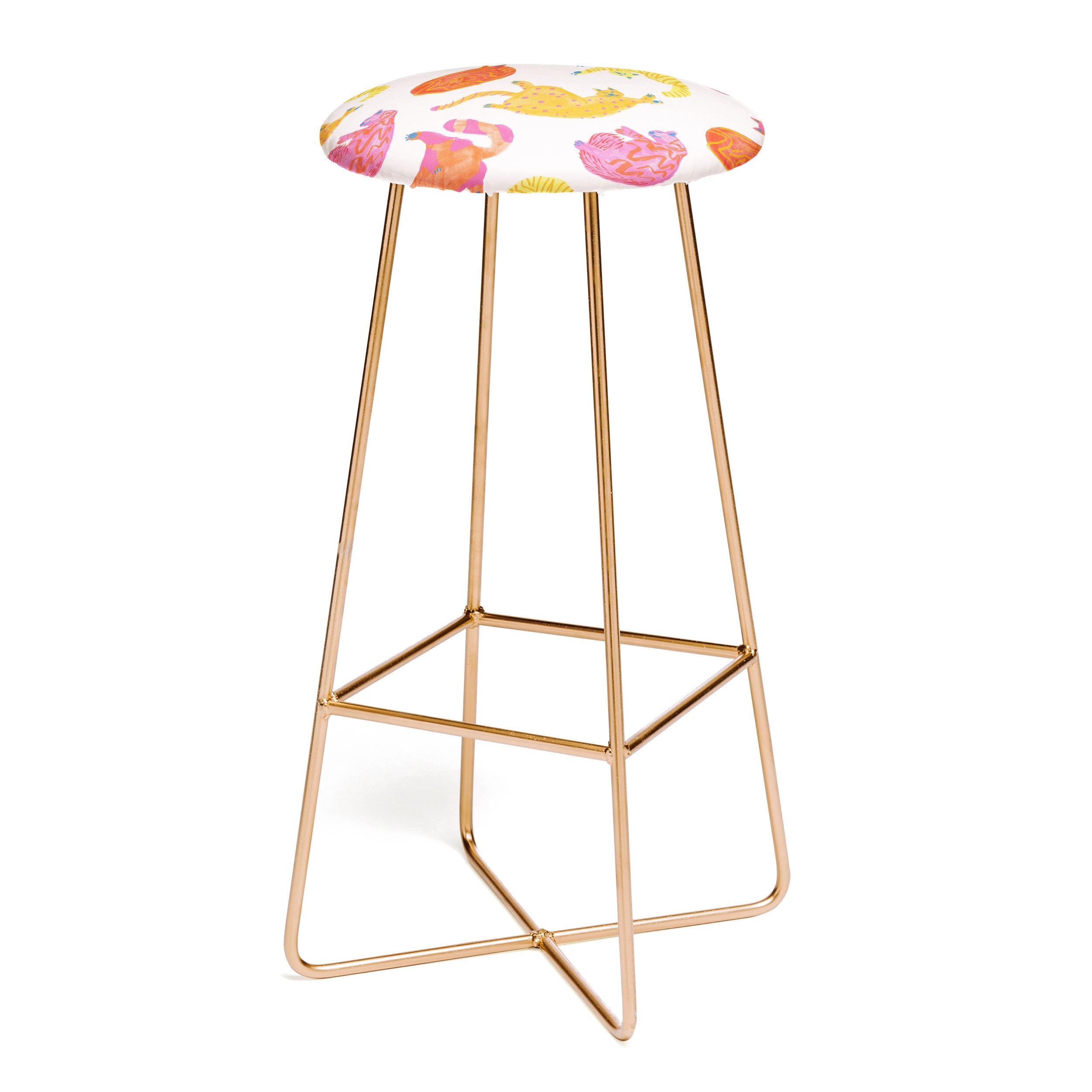 Saddle up, partner. The Deny Designs bar stool is the space-conscious and design-forward way to add seating to any space. Sleek, gently curved steel aston legs (available in black or gold) combine with the faux-leather upholstery for a modern yet unassuming stool. They feature a conveniently placed foot rest so your legs aren't left dangling, plus, you can select from our curated array of designs to match whatever your taste may be. And the best part? Every purchase pays the artist who designed it—supporting creativity worldwide.