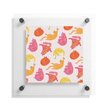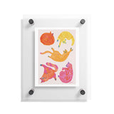 H Miller Ink Illustration Sleepy Cozy Kitty Cats in Orange Floating Acrylic Print