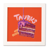 H Miller Ink Illustration Taurus Birthday Cake in Burnt Orange Framed Wall Art