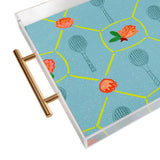 H Miller Ink Illustration Tennis Rackets Roses Acrylic Tray