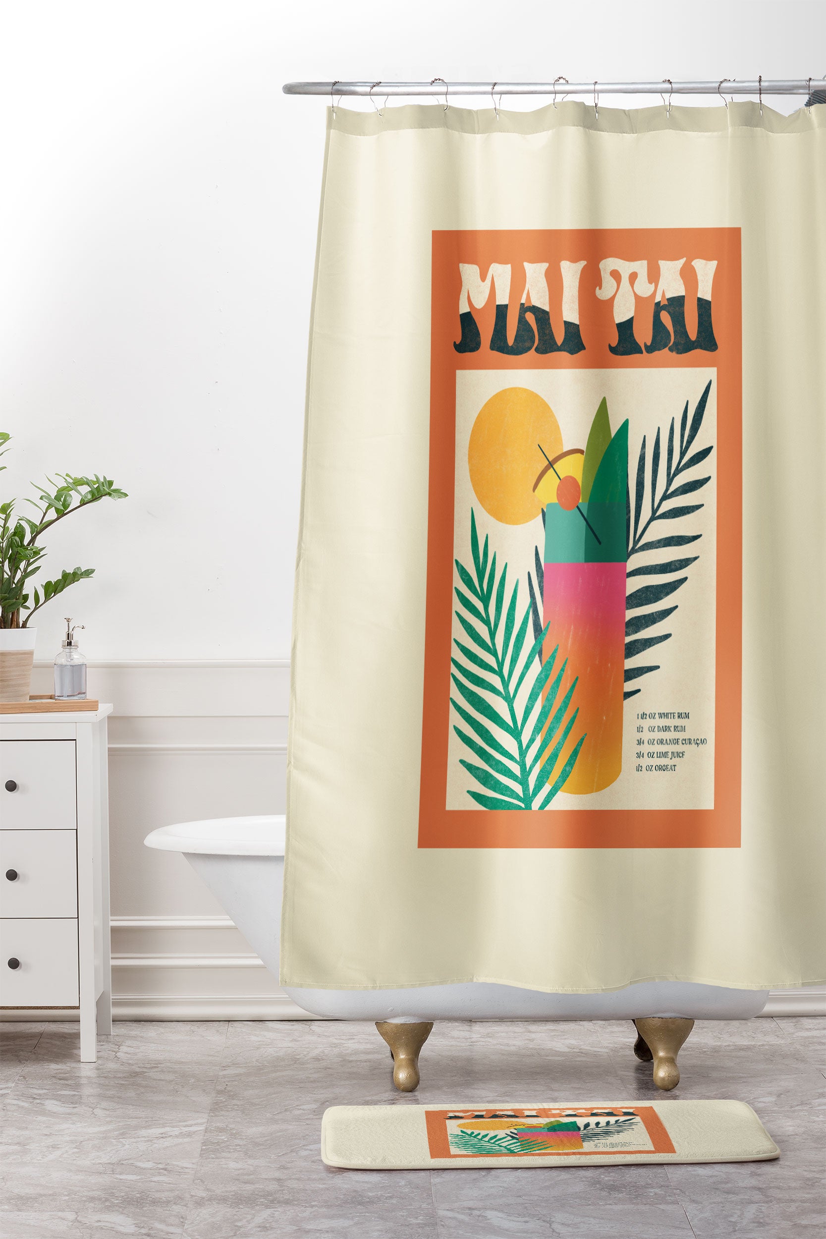 haleyum Mai Tai Vintage Cocktail Recipe Shower Curtain And Mat