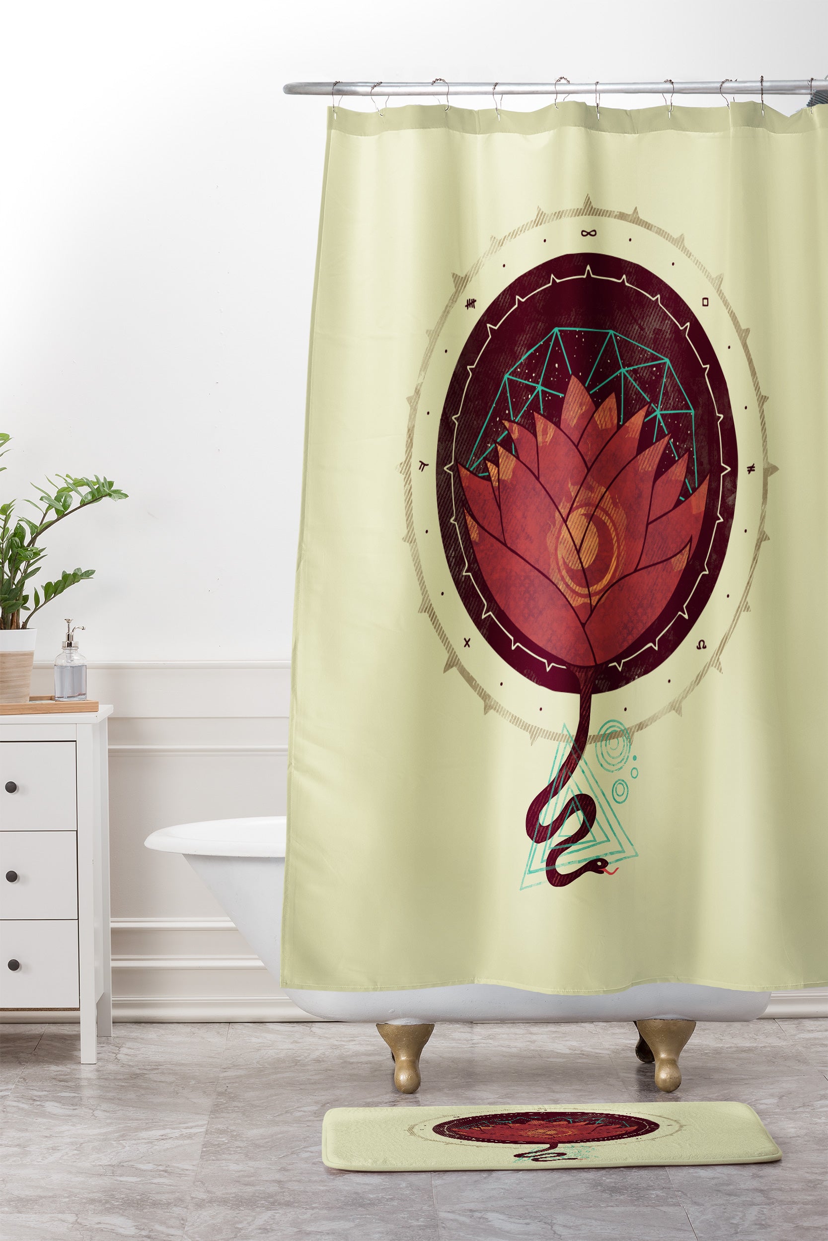 Hector Mansilla The Red Lotus Shower Curtain And Mat