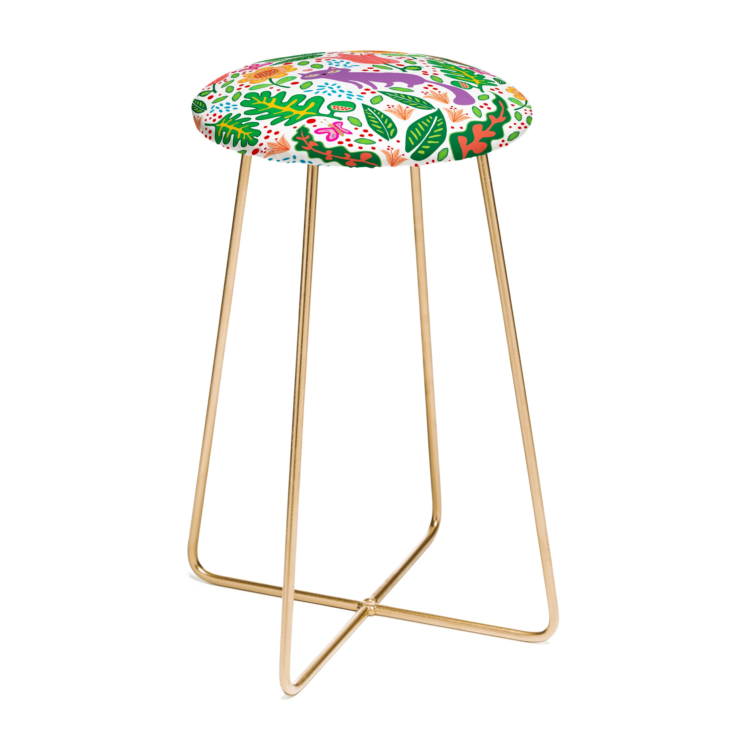 Saddle up, (little) partner. The Deny Designs counter stool uses all the space-conscious, design-forward styling of the bar stool, but with a slightly shorter frame. Sleek, gently curved steel aston legs (available in black or gold) combine with the faux-leather upholstery for a modern yet unassuming stool. Select from our curated array of designs to match whatever your taste may be. And the best part? Every purchase pays the artist who designed it—supporting creativity worldwide.