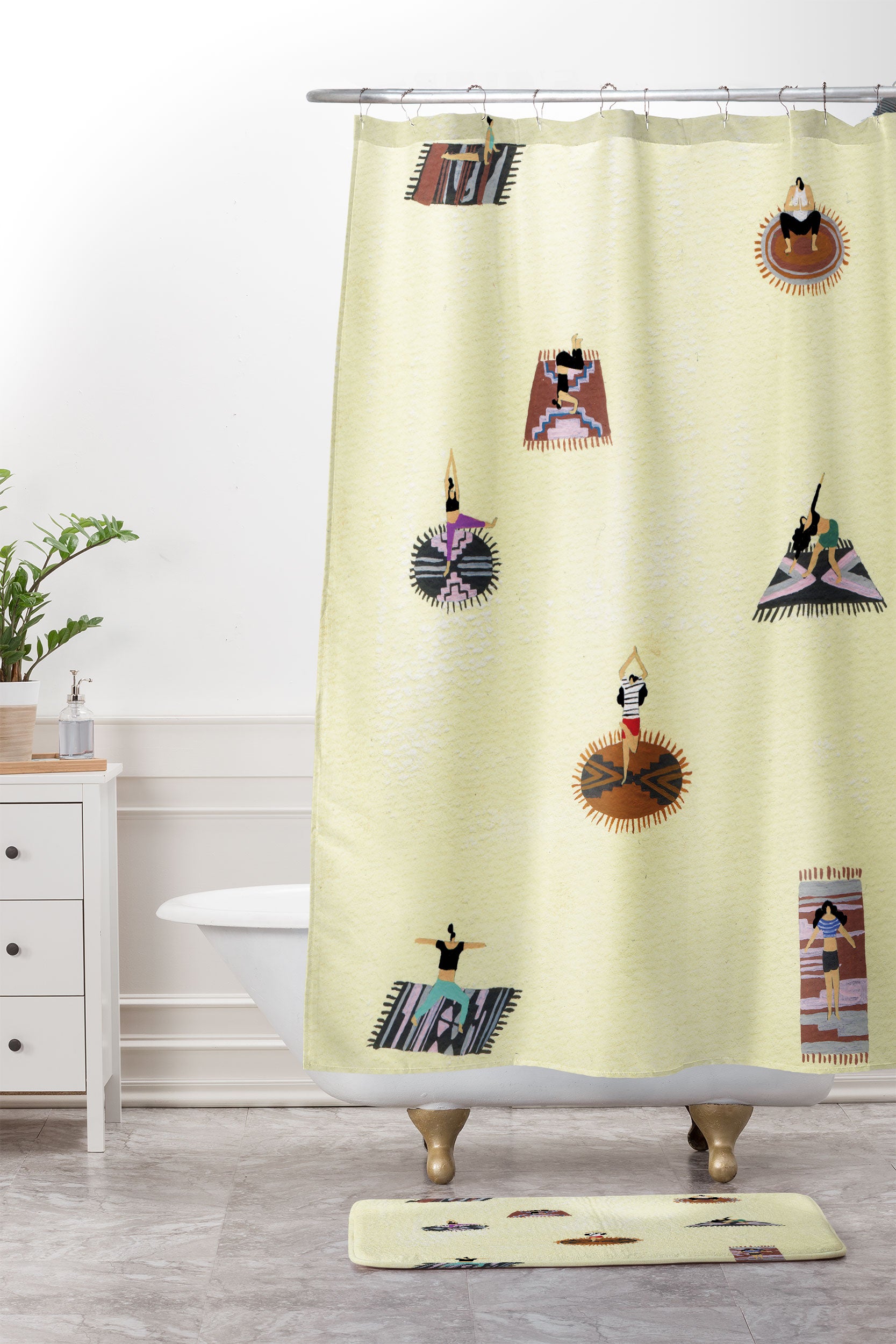Helo Birdie Custard yoga Shower Curtain And Mat
