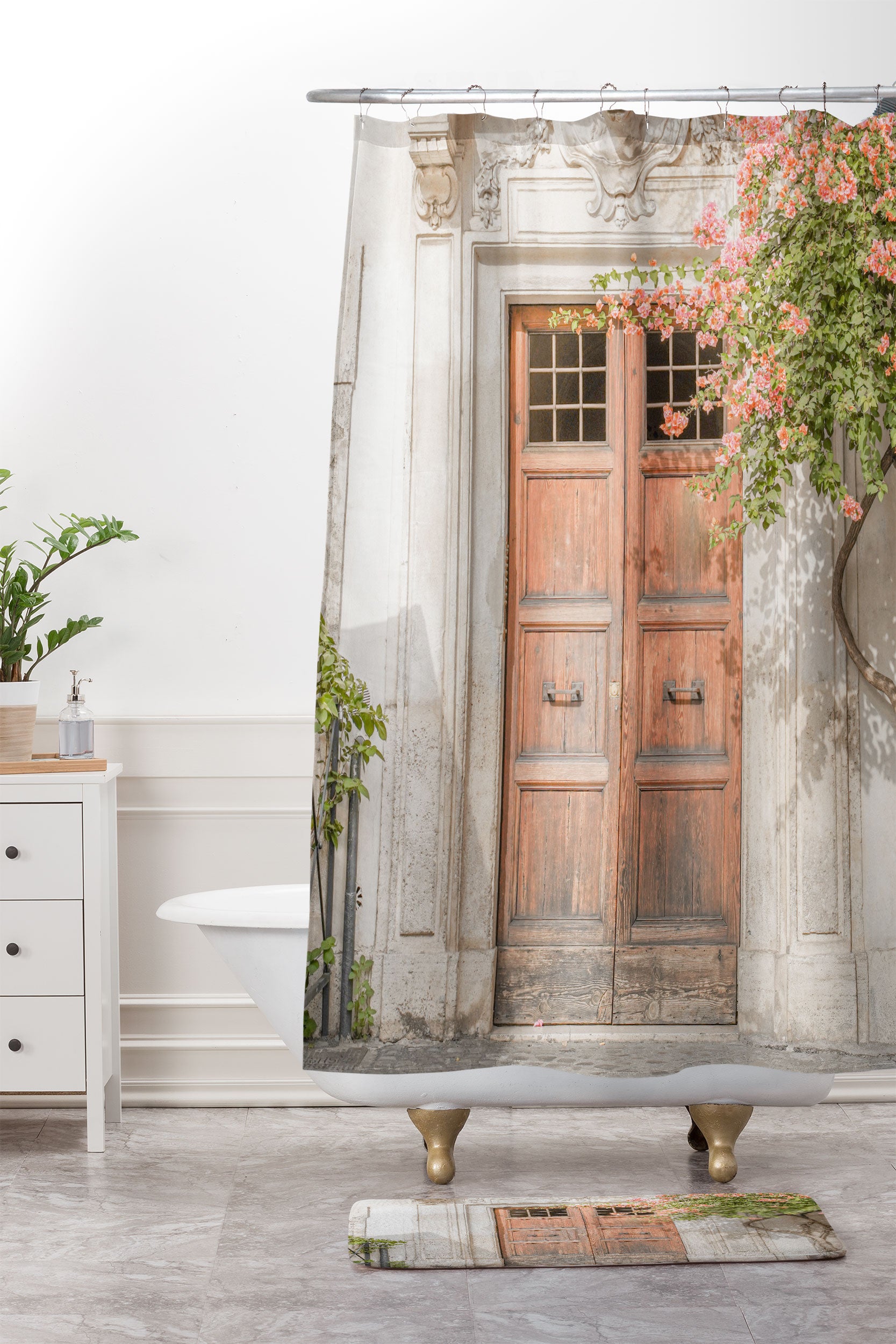 Henrike Schenk - Travel Photography Floral Entry In Rome Door Shower Curtain And Mat