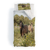 Henrike Schenk - Travel Photography Horses in a Field of Wildflowers Duvet Cover