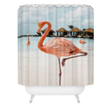 Henrike Schenk - Travel Photography Pink Flamingo Beach Photo Aruba Island Tropical Summer Bird Shower Curtain