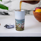 Henrike Schenk - Travel Photography Pink Flowers by the Ocean Travel Mug