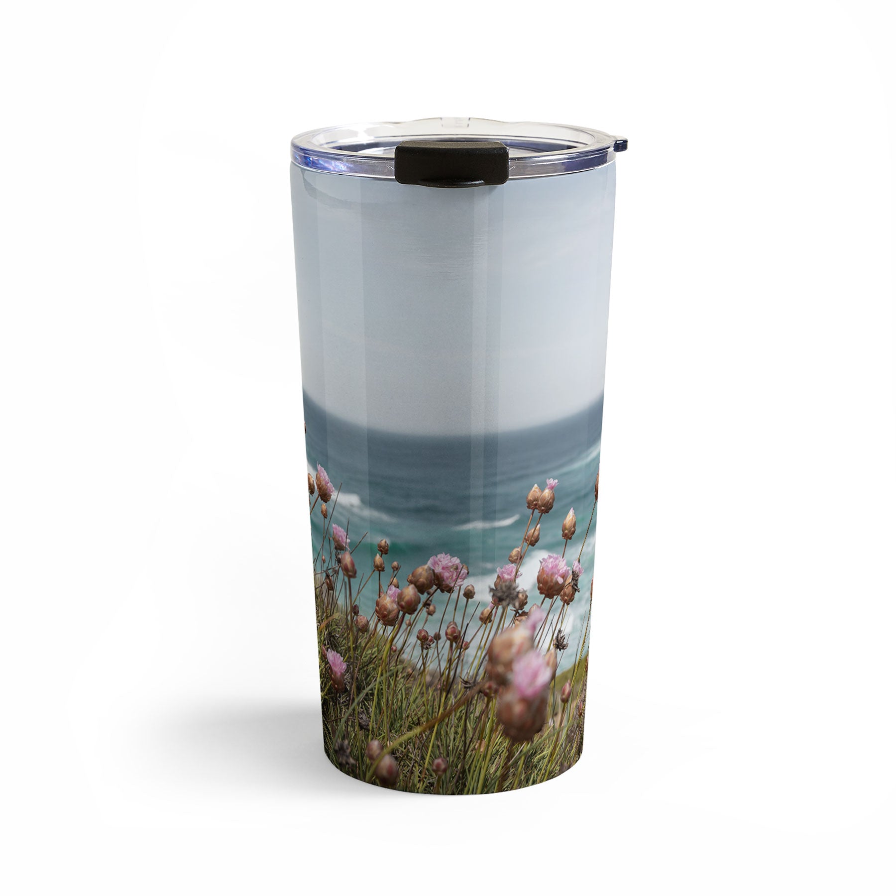 Henrike Schenk - Travel Photography Pink Flowers by the Ocean Travel Mug