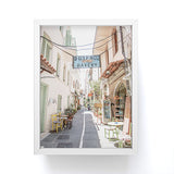 Henrike Schenk - Travel Photography Street In Greece Photo Pastel Village Houses Summer Framed Mini Art Print