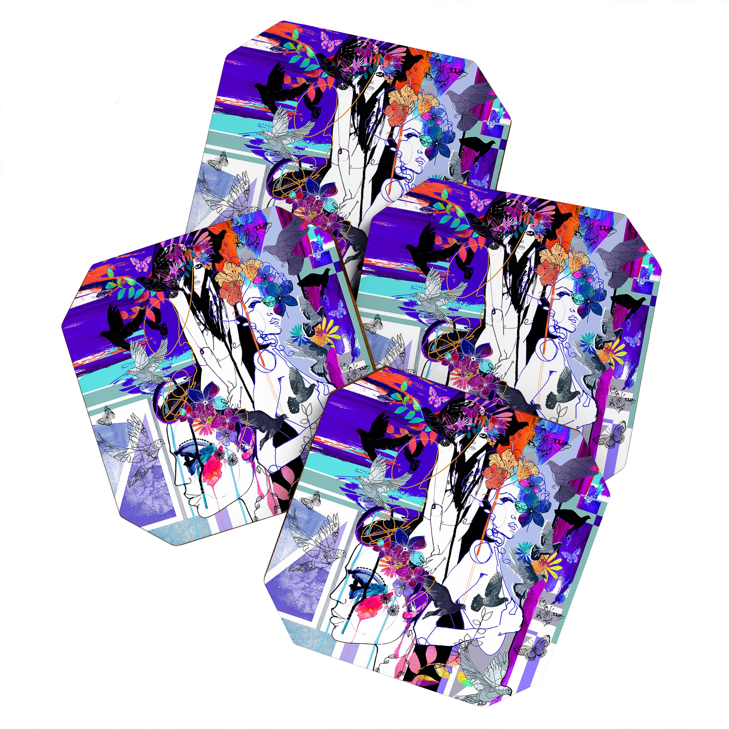 Coasters, please! The Deny Designs coaster set is designed to keep your table nice and clean while showcasing art from our curated selection of designs. Sold in a set of four, they're made from a high-density, satin-finished fiberboard that's lightweight and adaptable to any decor style. And the best part? Every purchase pays the artist who designed it—supporting creativity worldwide.