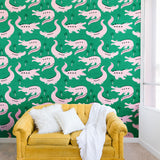 Insvy Design Studio Crocodile Pink Green Wall Mural