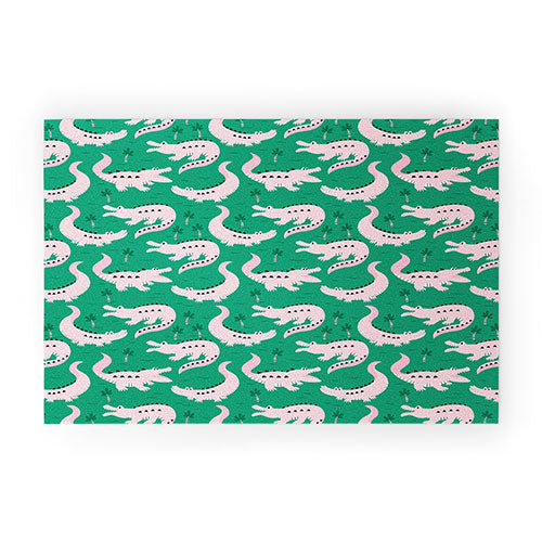 Insvy Design Studio Crocodile Pink Green Welcome Mat