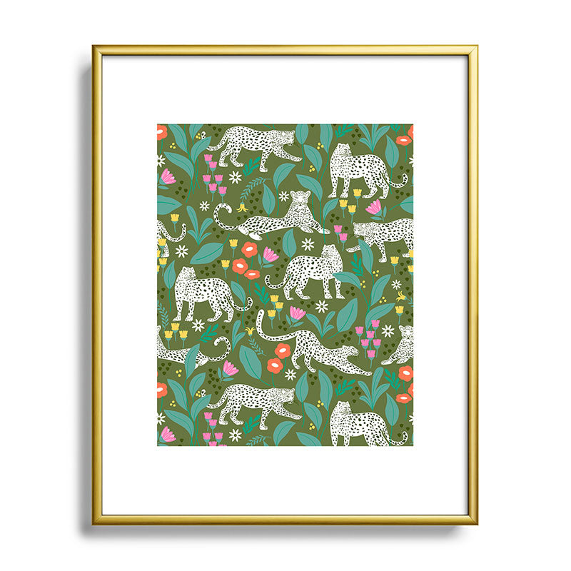 Insvy Design Studio White Leopards in the Jungle Metal Framed Art Print