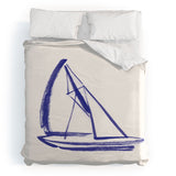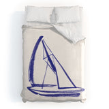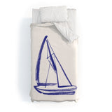 Intemporalis Sailboat Drawing Blue White Duvet Cover