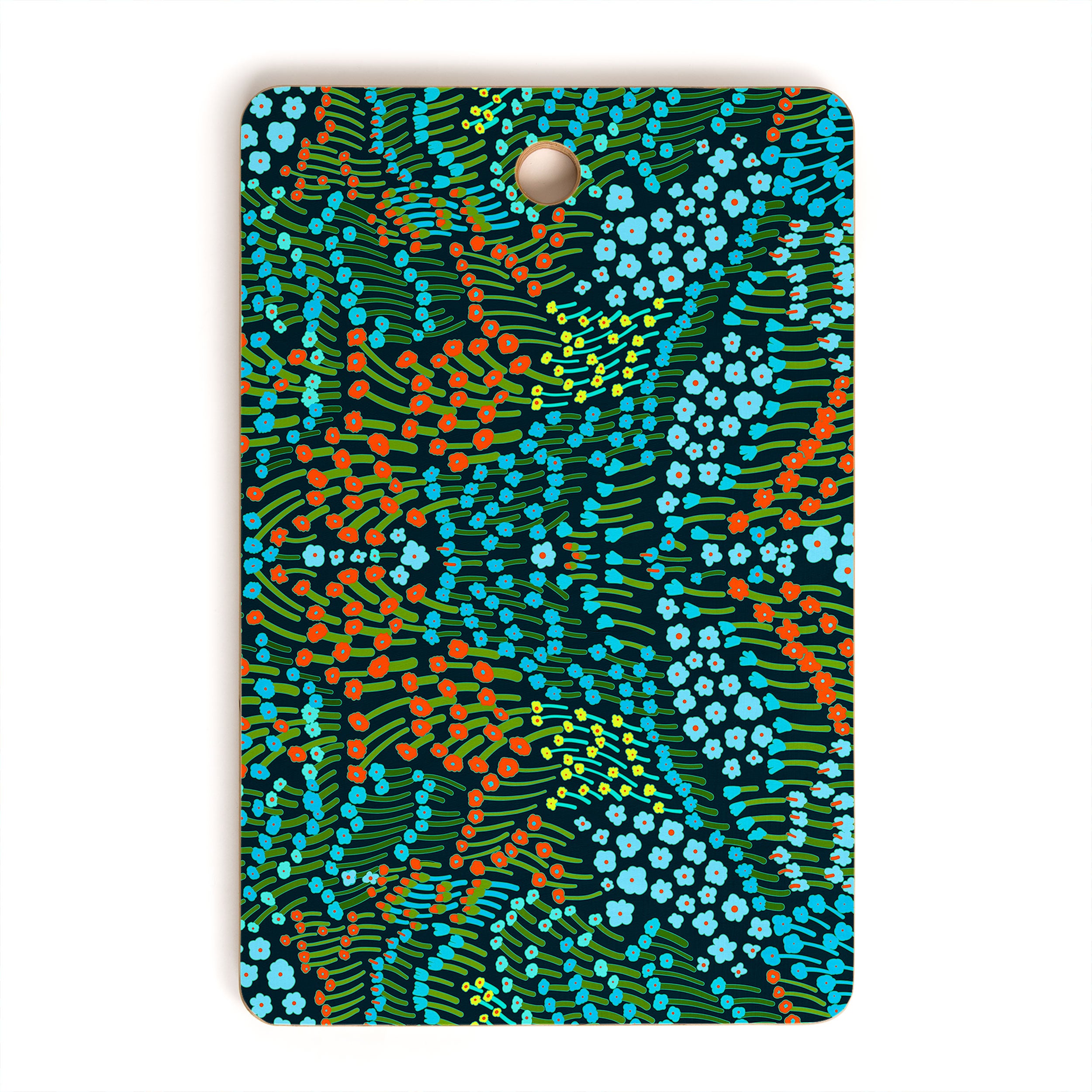 A must-have kitchen accessory any way you slice it. The Deny Designs cutting board is made from bamboo wood that won't look too heavy when integrated into your kitchen decor. Available in array of curated designs, the display side is printed with a satin finish that will pop when displayed on your counter or hung on the wall through the 1" handle. The prep side is a bamboo woodgrain that can be easily washed with a non-abrasive cloth. And the best part? Every purchase pays the artist who designed it—supporting creativity worldwide.