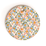 Iveta Abolina Blue Daisy Garden Cream Cutting Board Round