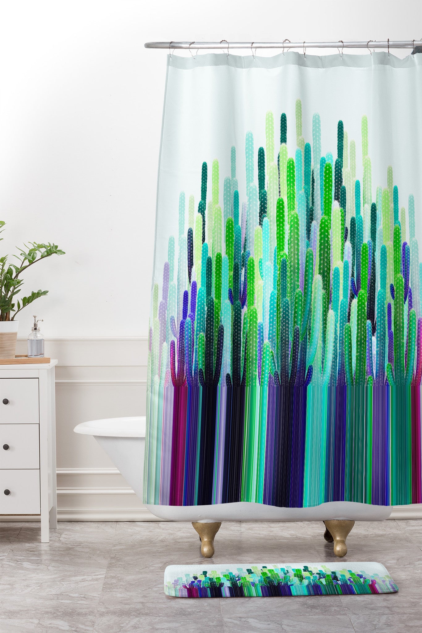 Iveta Abolina Cacti Stripe Shower Curtain And Mat