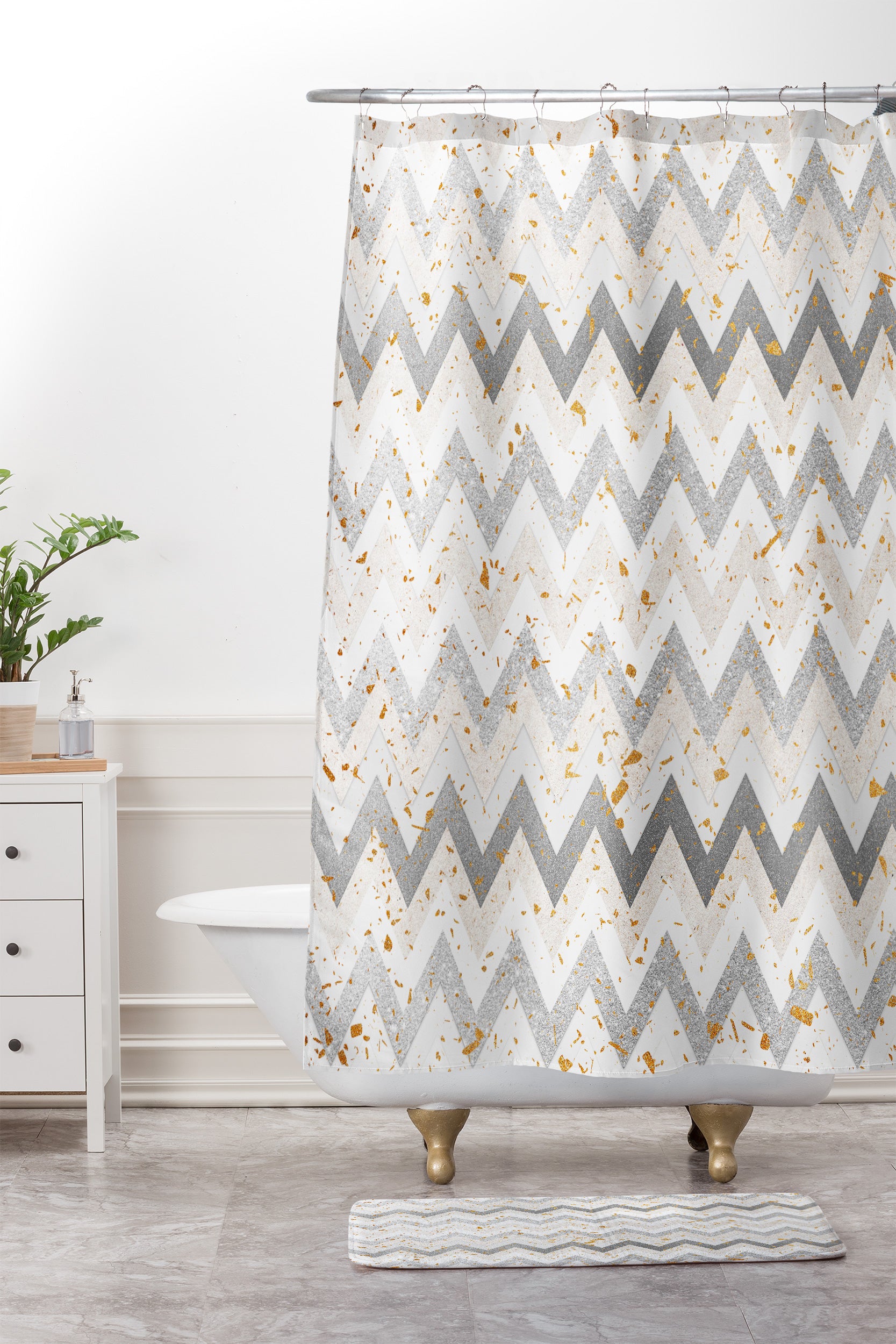 Iveta Abolina Chevron Confetti Shower Curtain And Mat