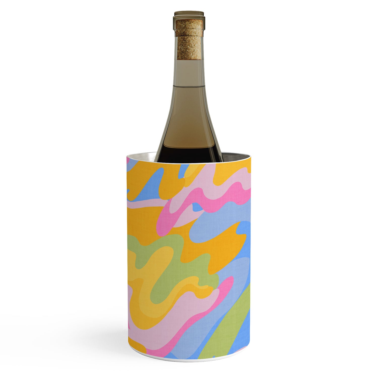 Keep the party going. The Deny Designs 57 oz wine chiller keeps a wine bottle cool for hours—simply slide the bottle into the canister and enjoy. Made from dishwasher safe stainless steel, they feature a curated array of designs wrapped around the outside to match any aesthetic. And the best part? Every purchase pays the artist who designed it—supporting creativity worldwide.