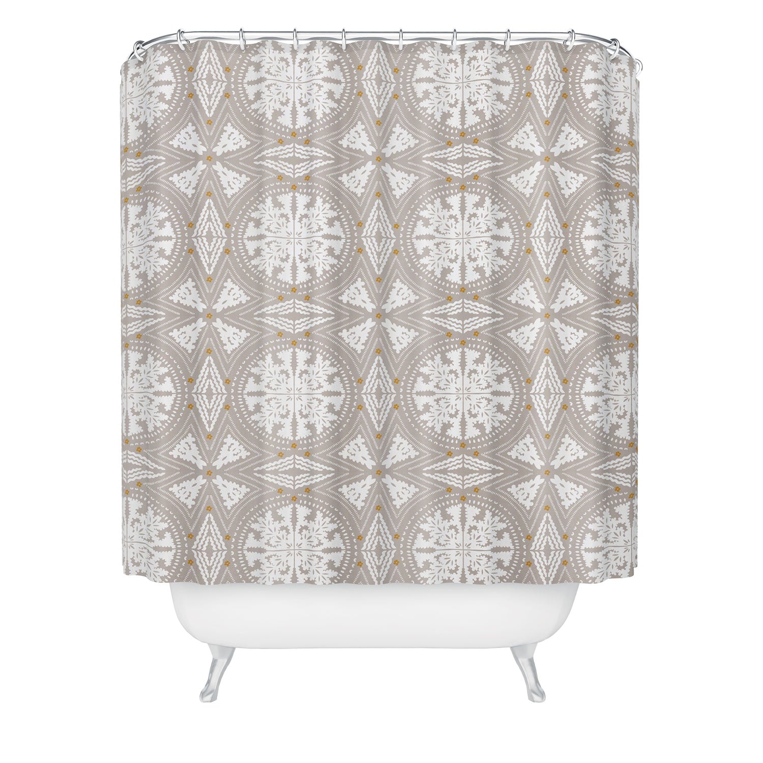 Set the stage. The Deny Designs shower curtain is crafted from 100% woven polyester and makes the perfect backdrop for whatever your bathroom decor may be. Adding some design to your shower curtains is a great way to make a statement in a room known for presenting plenty of design challenges. The buttonhole openings along the top means that you're free to use any curtain rings or hooks you please. And the best part? Every purchase pays the artist who designed it—supporting creativity worldwide.