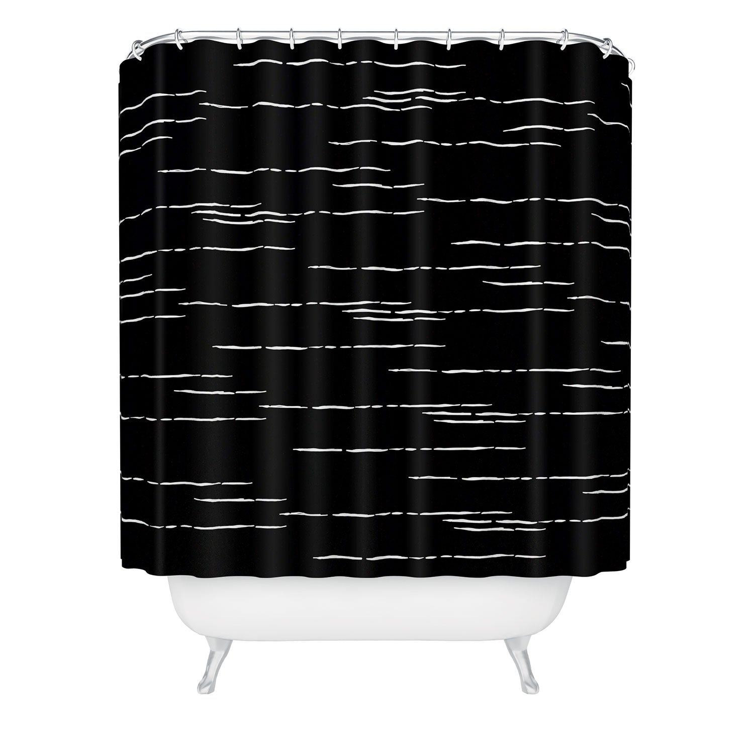 Set the stage. The Deny Designs shower curtain is crafted from 100% woven polyester and makes the perfect backdrop for whatever your bathroom decor may be. Adding some design to your shower curtains is a great way to make a statement in a room known for presenting plenty of design challenges. The buttonhole openings along the top means that you're free to use any curtain rings or hooks you please. And the best part? Every purchase pays the artist who designed it—supporting creativity worldwide.