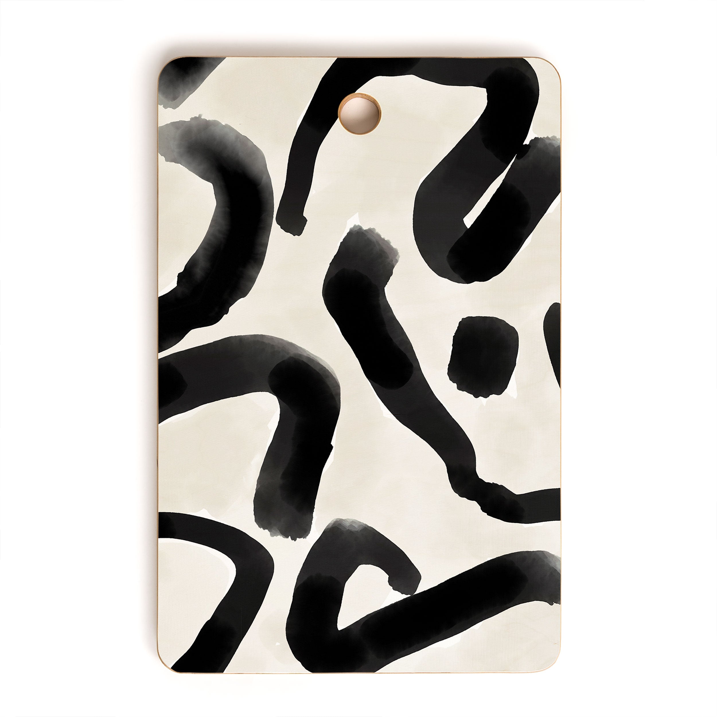 Jacqueline Maldonado Black Brushstroke Ecru Cutting Board Rectangle