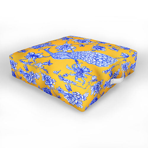 Jacqueline Maldonado Chinoserie Peacock Yellow Outdoor Floor Cushion
