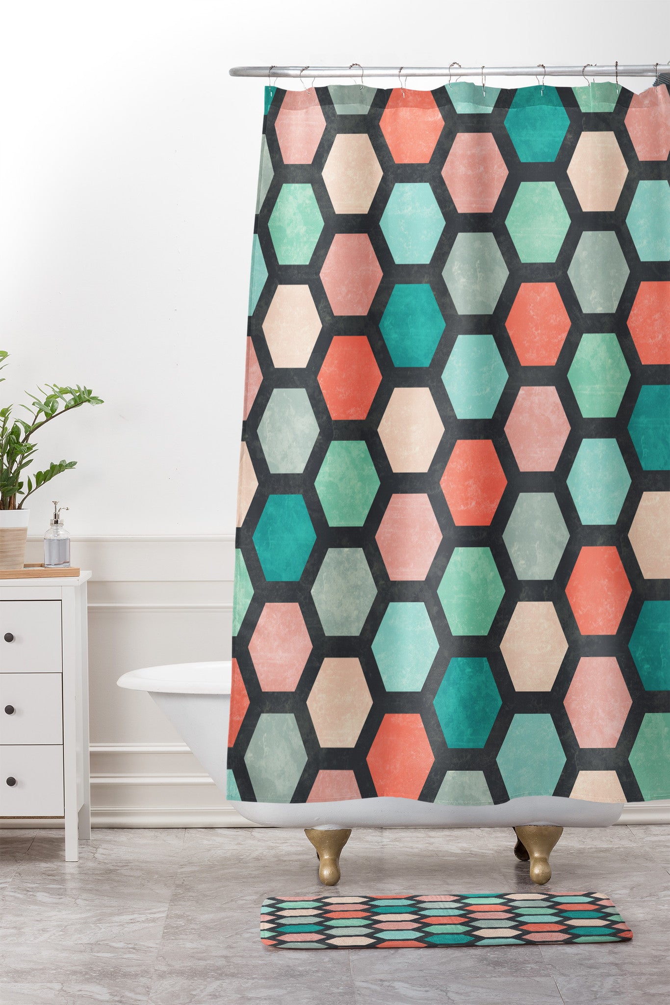 Jacqueline Maldonado Hexagon 1 Shower Curtain And Mat