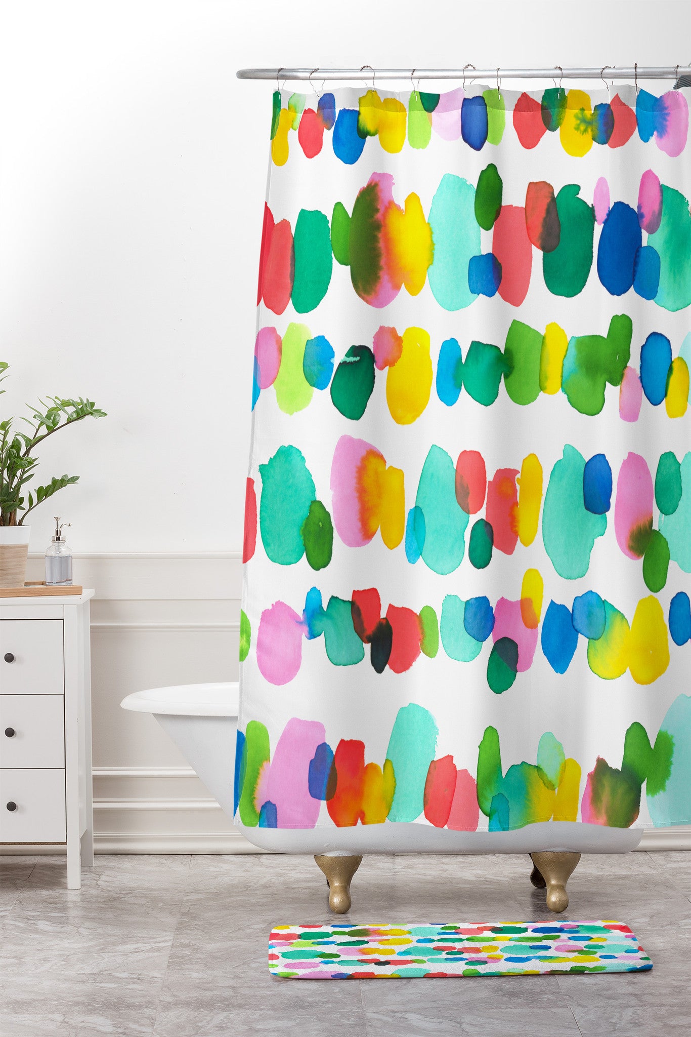 Jacqueline Maldonado Paradise Watercolor Dots Shower Curtain And Mat