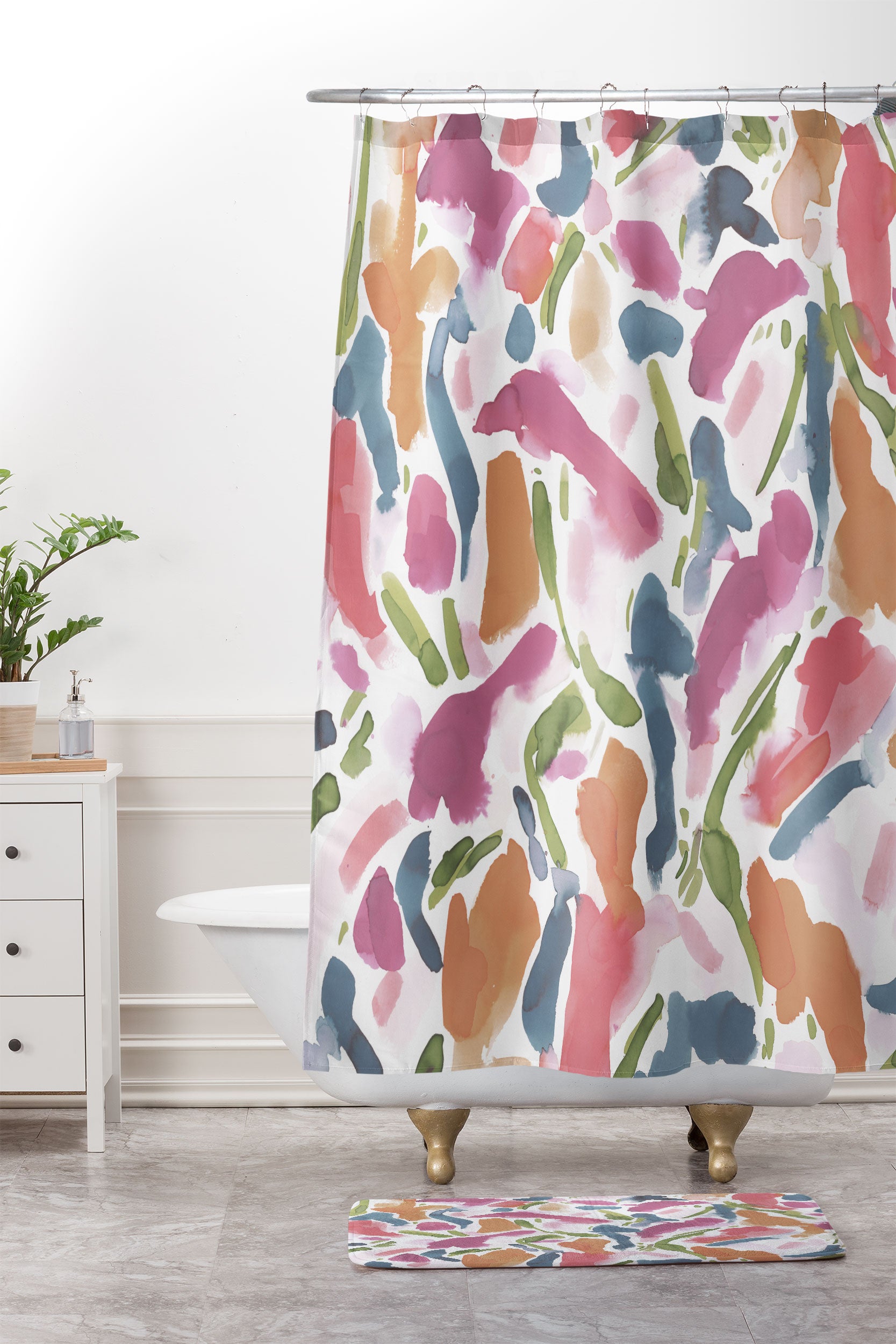 Jacqueline Maldonado Synthesis Raspberry Shower Curtain And Mat